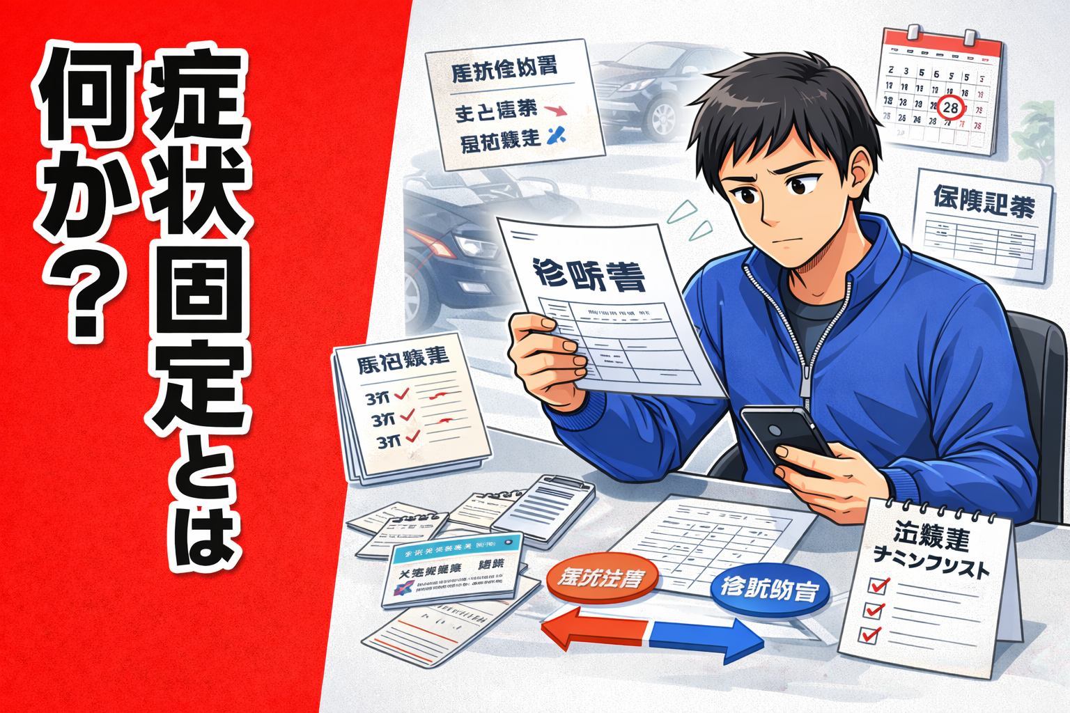 痛みや不具合が残っていても、治療による大きな改善が見込みにくい状態なら、症状固定と整理されることがあります。
